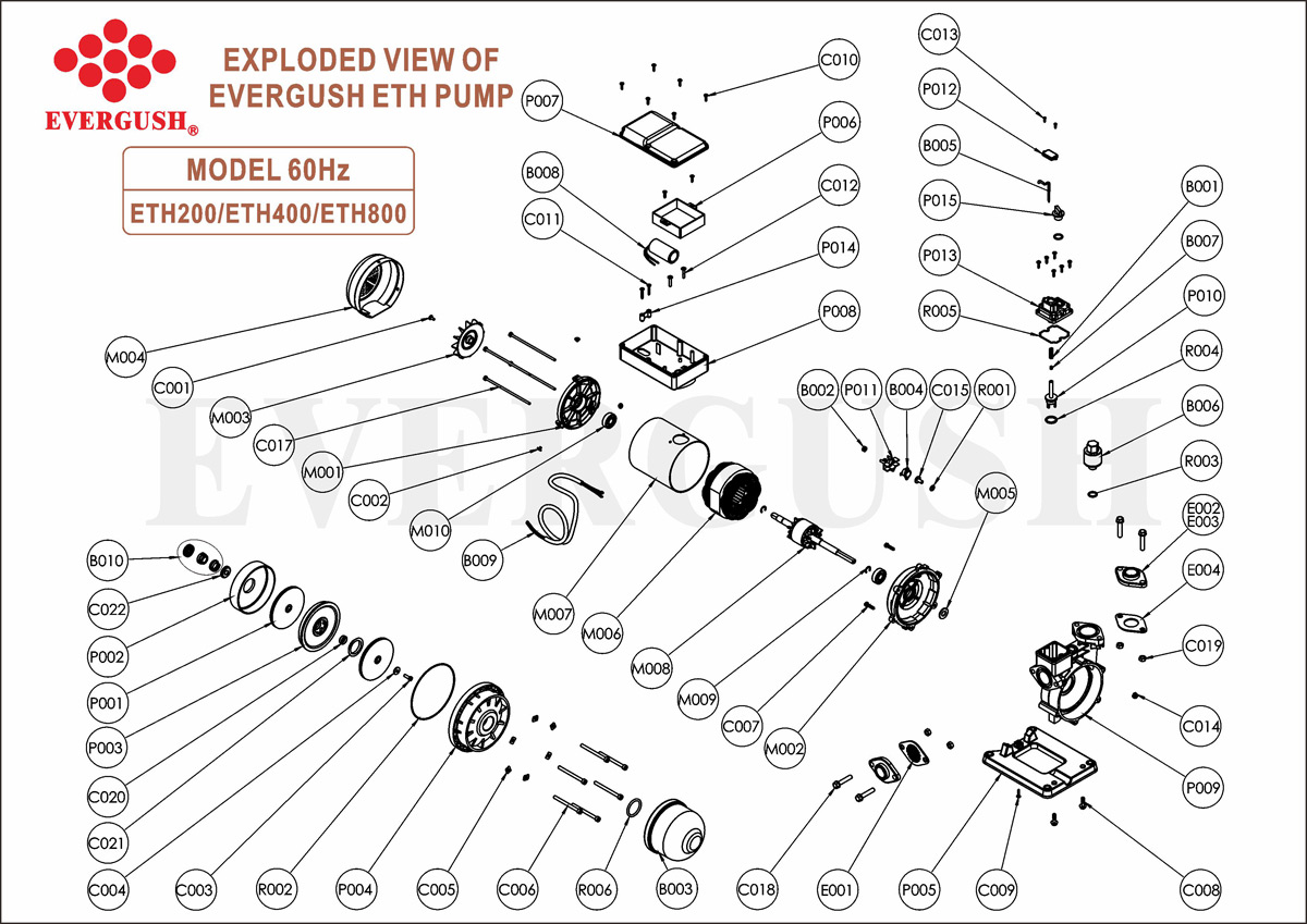 - Standard Performance for 60Hz Model: ETH200:15M*30LPM ; ETH400: 20M*30LPM ; ETH800: 25M*40LPM