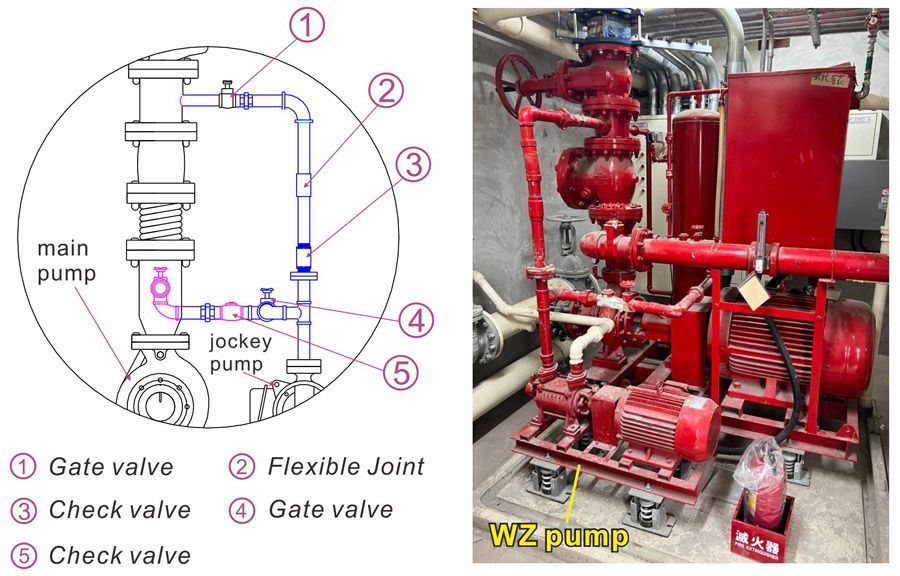 - For Fire jockey pump,It is commonly used for fire fighting systems. When there is small water demand in fire fighting systems, the main pump will not start, jockey pump will operate for this situation.