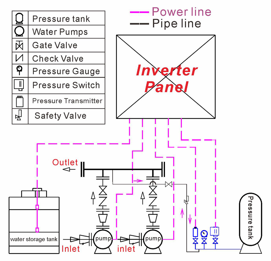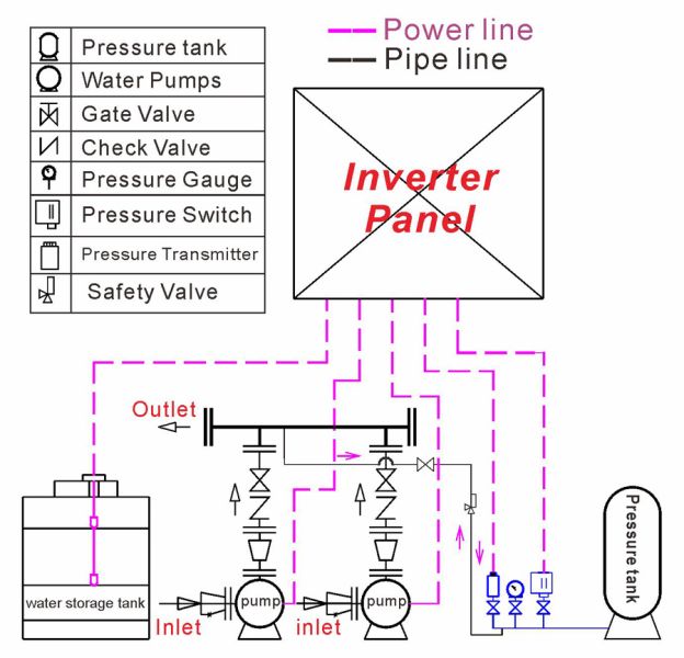 - The unit can keep water pressure stable, and you can adjust required pressure setting on the screen of inverter or PID.