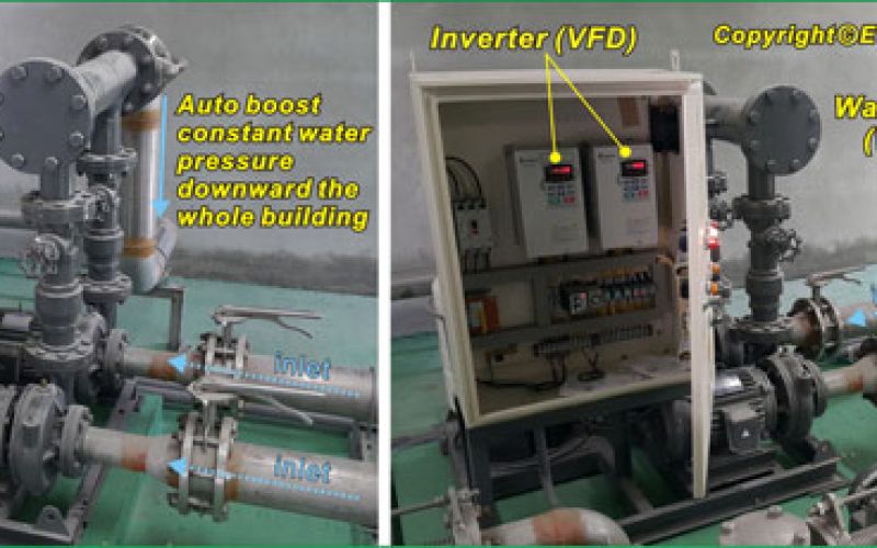 - Low noise and smooth operation. The system will adjust motor speed automatically, according to demand of capacity. It can save energy resources and uplift performance.
