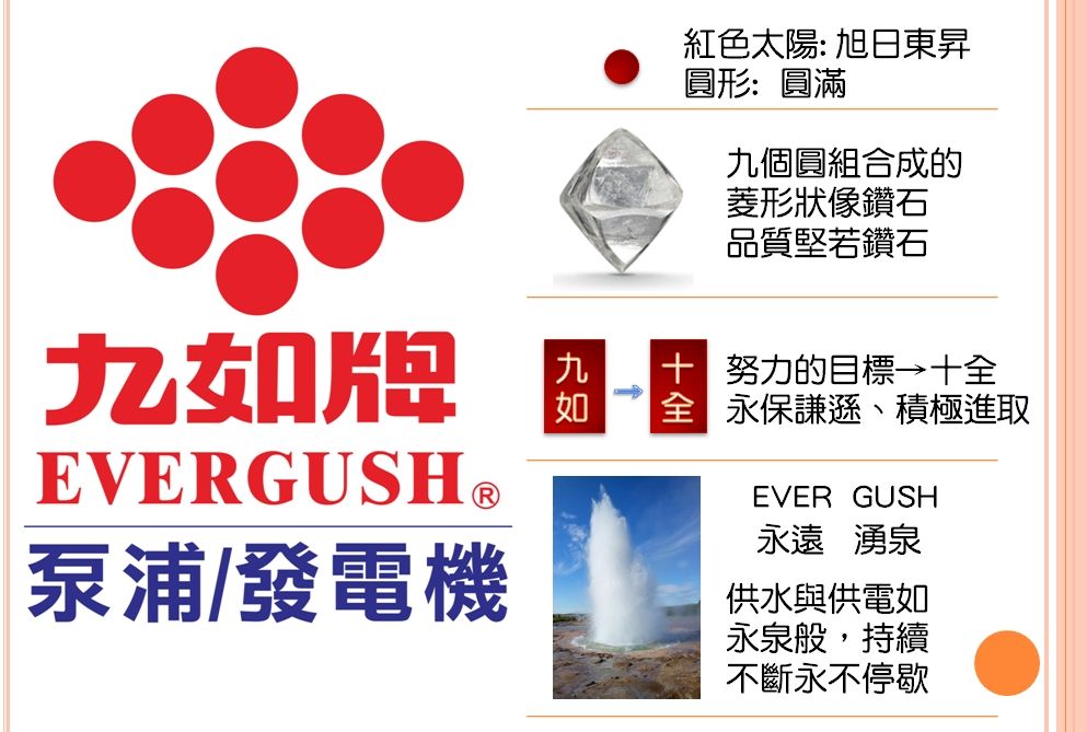 秉持「熱情、專注、創新、品質、永續」的核心理念,九如牌泵浦在超過半世紀的發展中,不斷追求產品創新與品質卓越,提供快速、有效率的售後服務,讓每一位用戶都能安心使用九如牌泵浦與發電機,享受穩定用水與用電的便利與安全。